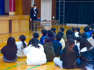 税理士協会の方をお招きして租税教室を開いていただきました。税金にはいろんな種類があり、消費税クイズでは、栄養ドリンク、エナジードリンク、サプリメント、キャットフードについて、消費税が10%か8%か考えました。消費税一つをとっても、8%と10%が細かく定められているなど、大人でも勉強しないと難しいと感じました。また、学校や水道、警察、消防などにも税金が使われており、安全安心な社会にするためには税金が必要ということを学びました。