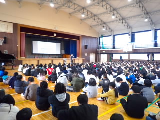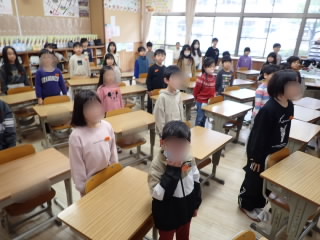 先週は、短期間でインフルエンザの感染が拡大し、休校にせざる負えない状況でしたので、休校中子どもたちの健康状態を大変心配していましたが、朝の校門での元気なあいさつにほっと胸を撫でおろしました。今日は全校朝会、人権集会を行いました。人権とはみんなが「幸せ」を感じられる権利であること、周りの人も幸せでないと人権が守られているとは言えないこと、算数や国語などの勉強よりも大事だと思っていることを話しました。その後、各学年の代表者1人が「ぬくもりメッセージ」を発表しました。どの学年もとても大切なことというのを肌で感じ取ったようで真剣に聞いていました。