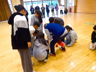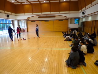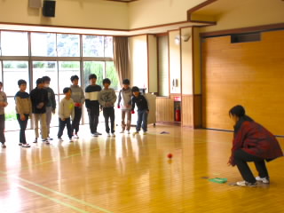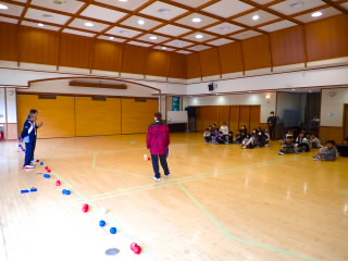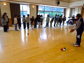 5年生は明日からフローティングスクールに行きます。今日はフローティングスクールの夕べのつどいで行う「ボッチャ」の練習をするために、市のスポーツ推進課の方4名にお越しいただきました。ルール説明をしていただいた後、各クラス6チームに分かれ何度も対戦するうち、コツをつかんでだんだん上手になっていったようです。明日の船内での対戦が楽しみです。