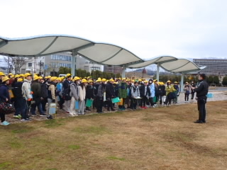 地区ごとの登校班で集まり、地区別児童会を行いました。地域の民生委員さんも多く参加してくださいました。地域の皆さんで子どもたちの安全を守っていただいていることに深く感謝いたします。登校班長が中心に班の人数の確認や、登校のめあてを決めました。