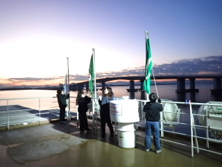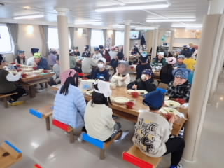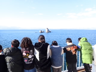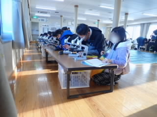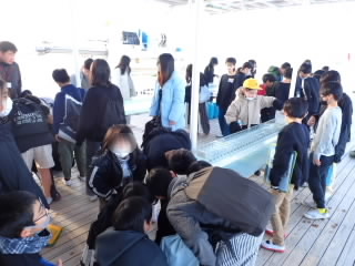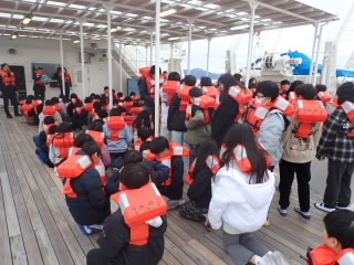 この時期では珍しく、2日間、非常に良い天気に恵まれたフローティングスクールを終えました。波も穏やかで、気温もそこまで寒くはなく、過ごしやすい2日間でした。子どもたちは、1日目のウォークラリーではすでに布引小学校の児童と仲良くなっていました。2日目のびわ湖学習は、プランクトン観察や外来魚と在来魚を比べる活動、びわ湖の透視度を調べる活動に、目を輝かせながら取り組んでいました。とても充実した2日間でした。
