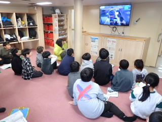 2年生が11月19日と今日に分けて、図書館見学に行きました。図書館の大きな部屋に入るとまず、図書館司書さんが絵本の読み聞かせをしてくださいました。感情のこもった読み方に子どもたちは集中して聞き入っていました。図書館の説明では、市内に7つの図書館があることや、3週間以内なら何冊でも本を借りられること、5万2千冊の本があることなどを教えていただきました。本を借りて帰るので、最後は気に入った本を一生懸命探していました。