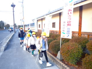 早朝から、青少年育成市民会議の方々と、五個荘商工会青年部の方々があいさつ運動に来てくださいました。正月疲れなのか子どもたちは最近元気がなかったのですが、来てくださった方々があいさつをすると、がんばってあいさつを返そうとする子が多かったです。いつもありがとうございます。
