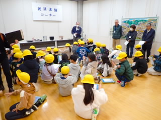 6年生は、町の歴史を知るために、学習センターを訪れ、近江商人博物館を見学しました。江戸時代の近江商人たちは、東京まで2週間、東北まで1か月かけて商品を売りに行っていたことを知り、今の昔の違いに驚きました。山越えのジオラマでは、大変な思いをして山を越えていたことがわかりました。ガイドの方の説明を聞きながら見学したり、天秤棒を実際に担いだりして楽しく学習できました。