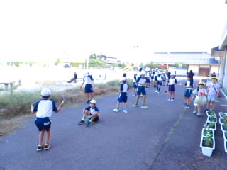 国スポ・障スポでは、競技会場や沿道、街並みなどを花で彩り、全国から来県される皆さんを温かいまごころのこもったおもてなしでお迎えするために「花いっぱい運動」に取り組んでいます。五個荘小学校にも、花を植えてほしいという依頼がありました。今日、ニチニチソウがたくさん届き、6年生がてきぱきとプランターに植栽していきました。色とりどりの花がどこに飾られるか楽しみです。