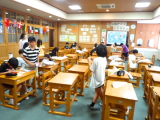 水泳の学習が始まっています。今日は気温が高く、熱中症指数も危険までは上がっていなかったので、絶好のプール日和でした。低学年は、水に慣れること、中学年は「けのび」を中心に水の抵抗を感じること、高学年は平泳ぎ、クロールの泳法を学習することをめあてにして学習しています。