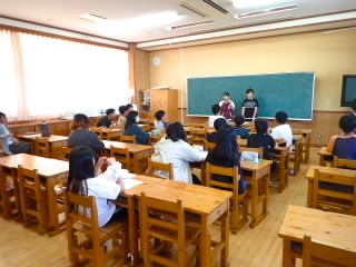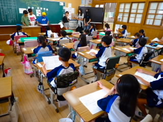 5年生では、米作りのお話を聞かせていただこうと、金堂ファームの方をお招きしました。金堂ファームは15年前にできた、共同で農業をする会社で、耕作放棄地が増え荒れ放題になっている田んぼをどうにかしようと、退職された方々が立ち上げ運営されているそうです。利益はほとんどなく、ほぼとんとんで、経営をされていたそうですが、今年はお米の値段が上がり、収入が増える予定とおっしゃっていました。それでも、今年度はごく普通のコンバイン(1台1200万円)を買わなければならず、経営は厳しいとのことでした。これをきっかけに日本の農業を守るためにはどうしたらいいのか、子どもたちには自分の意見を持ってほしいです。