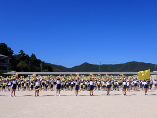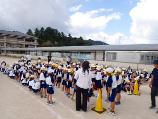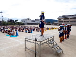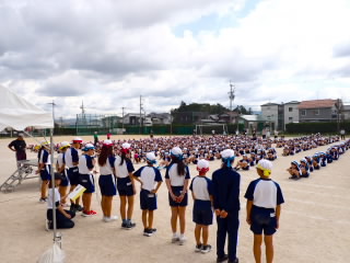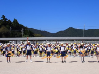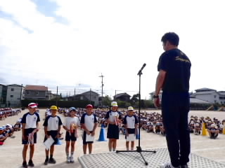 10月の全校朝会を行いました。運動会が間近に迫っていますので、それに絡めて一生懸命になることの大切さを話しました。国スポ障スポでは、選手の一生懸命になっている姿を見に、たくさんの人が滋賀県に集まっていること、今年の阪神タイガースの優勝の時には選手の一生懸命な姿に感動した観客に涙を流している人がいたことなどを例に挙げ、一生懸命な姿には人を感動させる力があることを話しました。運動会では、子どもたちの一生懸命な姿がたくさん見られることを期待しています。