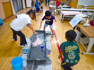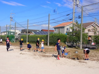 6年生が、プール掃除をしてくれました。プールの底には泥がたまっており、キャーキャー言いながらですがしっかりきれいにしてくれました。プールの周りのザラザラしたゴムの隙間まで丁寧にデッキブラシでこすっていました。放課後にはボランティアの方が駆けつけてくださり、非常に丁寧に仕上げをしてくださいました。お忙しい中、本当にありがとうございます。
