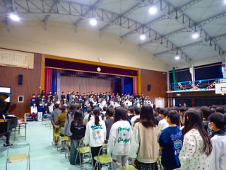 卒業式最後の練習を行いました。式の流れや歌のテンポ、起立・着席など全校で確かめました。在校生たちも、大切な式だという雰囲気を感じ取り緊張しながら練習しました。卒業生が感動の中で式を終えられるように、全校児童、教職員が一丸となって取り組みました。