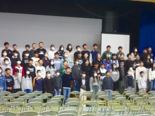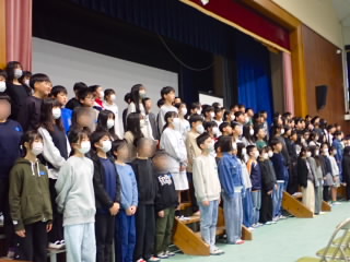 全校児童が体育館に入り、音楽会で今までの練習の成果を見せ合いました。どの学年もしっかり練習してきたことがよくわかりました。他の学年の発表もたいへん静かに聞けていました。最後の講評では、学年ごとのすばらしかったことを伝えた後、一生懸命になること、がんばっていることは見ている人に感動を与えること、今日の音楽会でたくさん感動をもらったことを話しました。