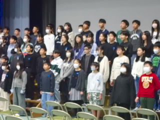 明日の卒業式に向け、6年生が最後の練習をしました。歌と呼びかけが中心です。強く歌うところ、歯切れよく歌うところなどを気を付けるよう教えてもらうと、みるみる上手に歌えるようになっていきました。最初聞いたとき位は、「上手だなあ」くらいに思っていたのですが、指導を受けた後の歌を聞いた時には鳥肌が立ち、涙が出そうになってしまいました。明日の卒業式とても楽しみです。