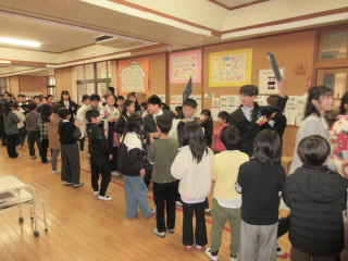 卒業に向けていろいろな取組が行われています。体育館も卒業式練習のためのいすが並びました。2時間目はたんぽぽ学級が「6年生おめでとうありがとうの会」をしていました。3,4年が計画し、「みんなでしっぽとり」や「こおりおに」を楽しみました。最後は、6年生へ少し照れながらプレゼント渡していました。昼休みは、商工会青年部の方が「バルーンリリース」を行ってくださいました。「宇宙飛行士になりたい」「プログラマーになりたい」動物関係の仕事をしたい」など子どもたちの夢を乗せた風船がたくさん舞い上がりました。