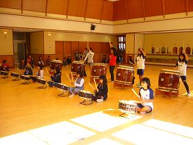 太鼓が披露されます。当日を前にして、お昼休みの時間に練習をしてい