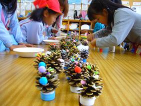 1年生の子どもたちは、秋のものを使って遊びやゲーム、飾りなどを