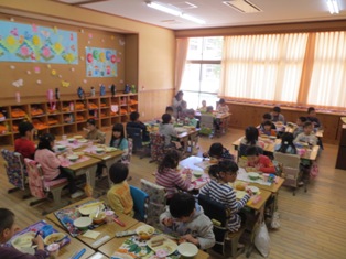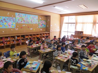 1年生は、14日(月)から給食が始まり、5校時までの学習となりました。初めての学校給食のメニューは、カレーライスでした。おいしくいただきました。