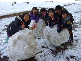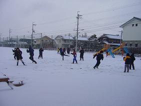 今朝からの雪で、ずいぶん積もりました。子どもたちは、休み時間に