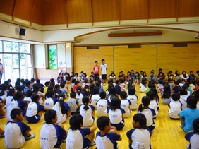 今日は、それぞれの色ごとに運動会の頑張りをたたえ