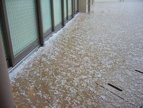 中庭が、雹で真っ白になりました。