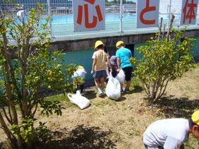 そこで、全校で草むしりをして学校を美しくしました。