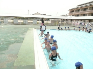 6月10日のプール開きから、水遊び・水泳学習が始まりました。1年生にとっては初めての大きなプールでの学習に、胸をワクワクさせながら楽しく学習しています。また上学年はそれぞれに目標をもち、記録が伸ばせるようにと一生懸命、学習に取り組んでいます。