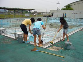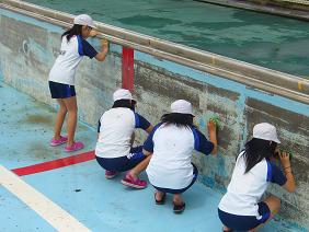 行いました。プールも古くなり汚れがこびりついていましたが、子どもたち