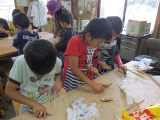 河辺いきものの森へ、2クラスずつ2日間にわたって学習に行きました。森の中でのクイズラリーや散策、竹を使ったクラフトなど夢中になって取り組みました。