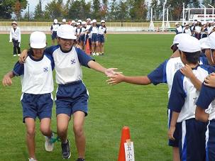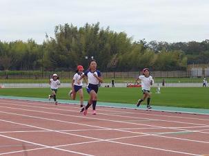 五個荘・能登川地区の5年生と6年生全員が、布引スタジアムに集まって100メートル走や2人3脚に挑戦しました。また、各学校代表の子どもたちが走り幅跳びやリレーなどに挑み、力いっぱい友だちを応援をしました。