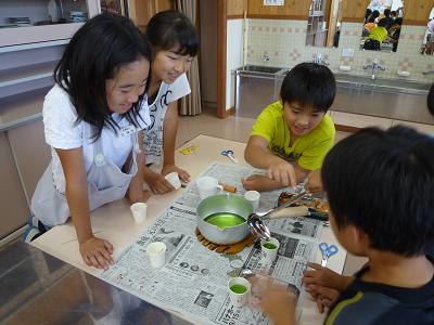 4年生の総合学習では、環境をテーマにして学習をすすめています。今回は、油を利用してろうそくづくりに挑戦しました。