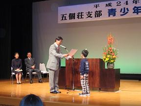 昨日、文化学習センターで「五個荘地区青少年育成大会」が開催されました。