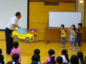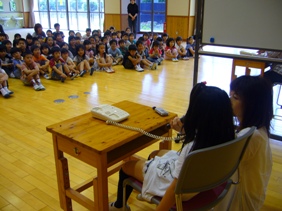 今日は、市役所の方に来校いただいて、1年生の子どもたちに