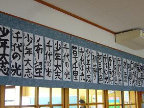 今日から「校内書き初め展」を開催しています。子どもたちの力作を