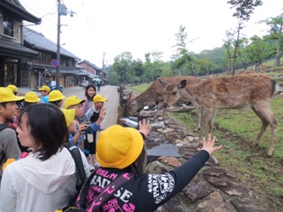 明日香村の史跡めぐりのサイクリング、法隆寺や平等院鳳凰堂、東大寺の見学など社会科の歴史学習を充実させるねらいをもって、修学旅行に行きました。途中、小雨が降りましたが、班を中心として協力して活動に取り組みました。小学校生活のいい思い出がつくれました。