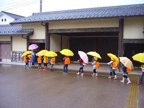 途中でお家の人が迎えてくださいました。中には、学校から一緒に歩いて