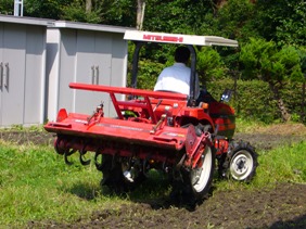 草が生い茂っていた学級園を農協の方がトラクターで耕してくださいました。