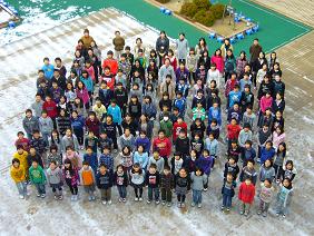昨日降った雪が残る中庭でしたが、みんなきれいに並んで、ハイポーズ!