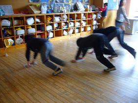 しばらく様子を見ていると、教室の床拭きもワークスペースの床拭きも、行っ