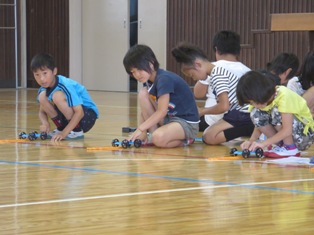 3年生にとっては初めての理科の学習に、4月から取り組んでいます。今回は、ゴムのはたらきについて、車が進む距離を参考にして学習を深めていきました。