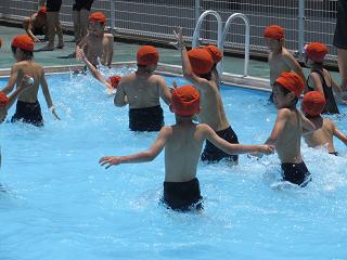 6月3日に放送によるプール開きをしました。4日は、2年と5年が今年度初めて水泳学習に取り組みました。プールサイドに子どもたちの楽しい声が響いていました。