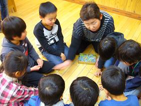 1年生では、お父さんやお母さん、おじいさんやおばあさんから、昔の遊びを