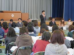 学習参観のあと、体育館でPTA総会が行われました。97名の会員の方が参加
