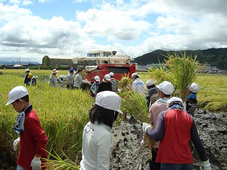 5月に田植えをした苗が大きく成長し、米の収穫をしました。地域の方に協力していただき、子どもたちにとって初めての貴重な体験活動となりました。今後は、米について食育の学習を中心に取り組んでいきます。