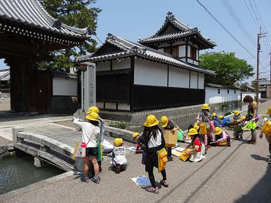 社会科の学習で、クラスごとに3方向にわかれて五個荘地区のまち探検に出かけました。地域のよさを見つけ、地域に愛着をもつことがねらいです。