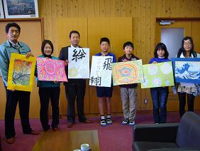 カンボジアの小学校へ行かれる藤野食品の代表の方に6年生の代表より