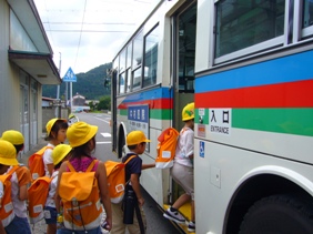 の子どもたちがバスで登下校をしました。
