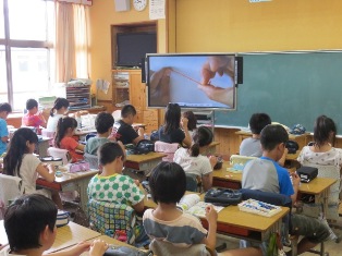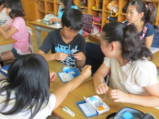 家庭科の学習は5年生から始まります。今回、初めて裁縫セットを使って学習をしました。まずは玉結びを先生に教えてもらい、何度も挑戦しました。