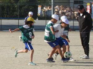 ボールを使ったゲームなどを楽しんだ後、サッカー選手からお話を聞いたり質問したりして、夢をかなえるために大切なことを学びました。