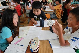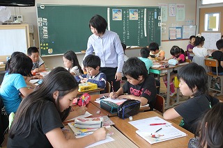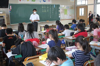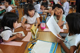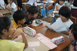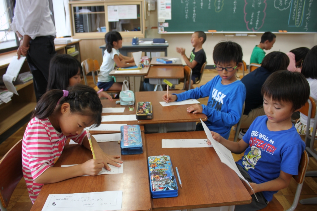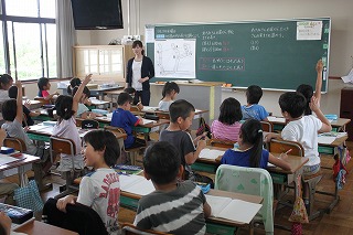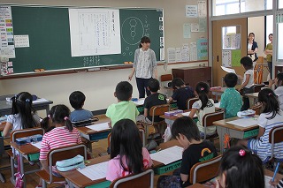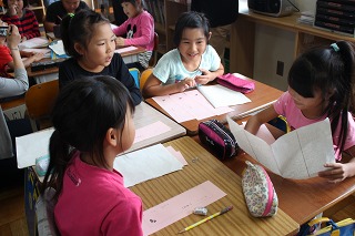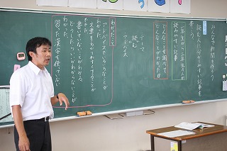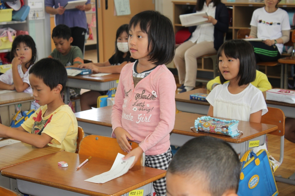 本校では、今年度『自分の思いや考えを持ち、豊かに表現する力を育てる。~書く力を通して~』というテーマを設定し、国語科を窓口に校内研究を進めています。その第1回目として6月24日水曜日に、4年生・海外学級で授業研究会を行いました。