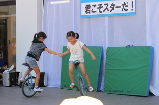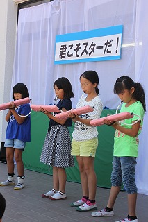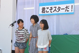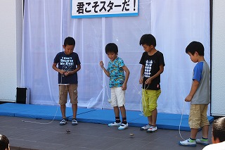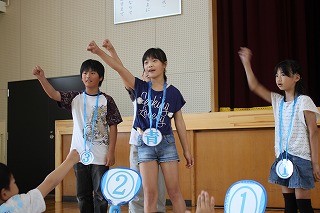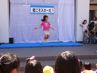 去る7月10日金曜日の昼休みに、中庭で児童会本部の運営による『第1回君こそスターだ!On ステージ』を開催しました。これは、湖三小の中でいろいろな特技を持っている人に、このステージに登場してもらい、そのすぐれた技を紹介してもらおうという集会です。第1回目にも関わらず、全校で17組39名の子ども達が出場し、それぞれの特技をみんなの前で発表してくれました。発表してくれた特技としては、ピアニカ・なわとび・竹馬・一輪車・側転・逆立ち・ダブルタッチ・ダンス・お笑いなど、多種多様な発表がなされ、見学にきた子ども達や先生方を大いに楽しませてくれました。友だちの意外な面を発見して、改めて友だちを見直すきっかけにもなったようです。