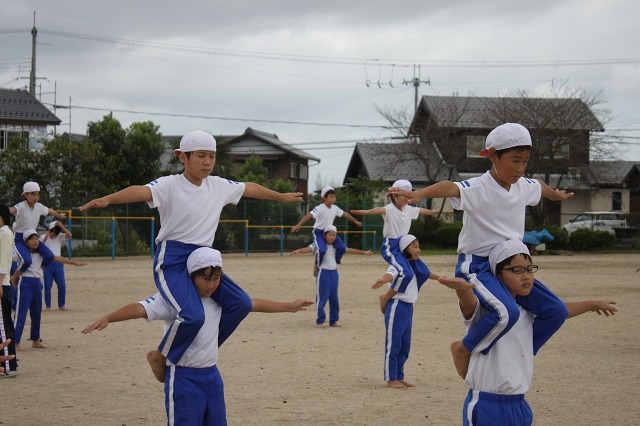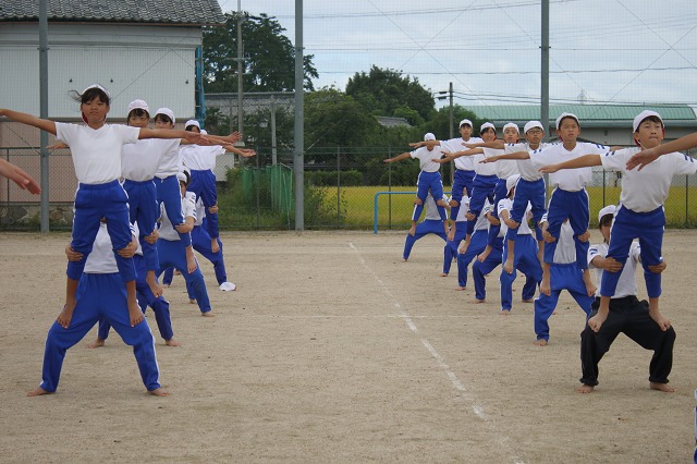 高学年では、85名の5・6年生が心を一つに様々な技に挑戦します。